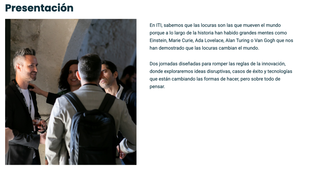 El próximo 22 de mayo de 2026 el ITI celebra el Softing & TICTalk Meeting en Torre Juana. Un encuentro técnico centrado en la transferencia de conocimiento sobre la calidad del software y su impacto directo en la competitividad de la industria actual. Una jornada diseñada para romper las reglas de la innovación, donde se explorarán ideas disruptivas, casos de éxito y tecnologías que están cambiando las formas de hacer, pero sobre todo de pensar.