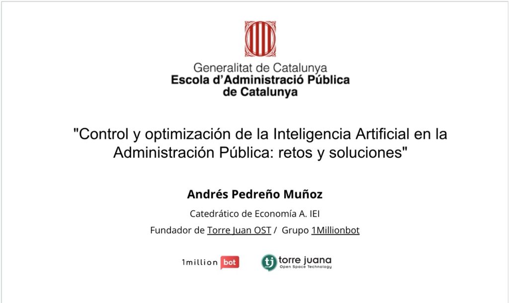 Más de 1.400 profesionales de ayuntamientos, consells comarcals y la Generalitat de Catalunya participaron el 16 de octubre en una sesión magistral impartida por Andrés Pedreño, fundador de Torre Juana OST y del Grupo 1MillionBot, dentro del ciclo “IA i Administració pública: transformar el futur amb intel·ligència” organizado por la Escola d’Administració Pública de Catalunya (EAPC).