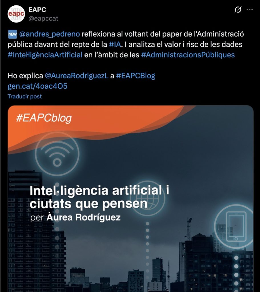 - Casos prácticos de IA aplicada a la gestión de licencias urbanísticas y comerciales, la comunicación institucional, la movilidad urbana, la gestión medioambiental y el análisis de datos de smart citiesCopia de EAPC-Escuela de Admini….