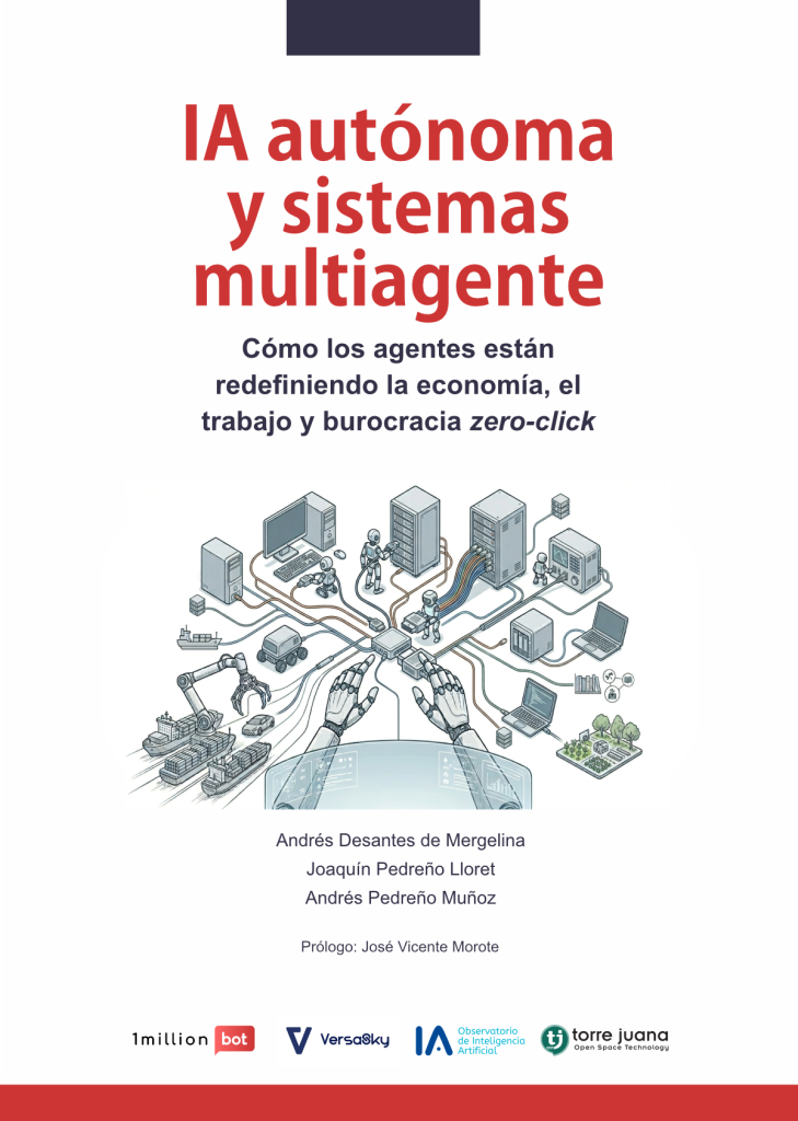 La Inteligencia Artificial ha dejado de ser un simple oráculo conversacional para convertirse en una fuerza digital capaz de ejecutar acciones en el mundo real. Este es el eje vertebrador del nuevo libro «IA autónoma y sistemas multiagente. Cómo los agentes están redefiniendo la economía, el trabajo y burocracia zero-click», una obra fundamental escrita por los expertos Andrés Desantes de Mergelina (CEO de 1MillionBot), Joaquín Pedreño Lloret y el economista Andrés Pedreño Muñoz.